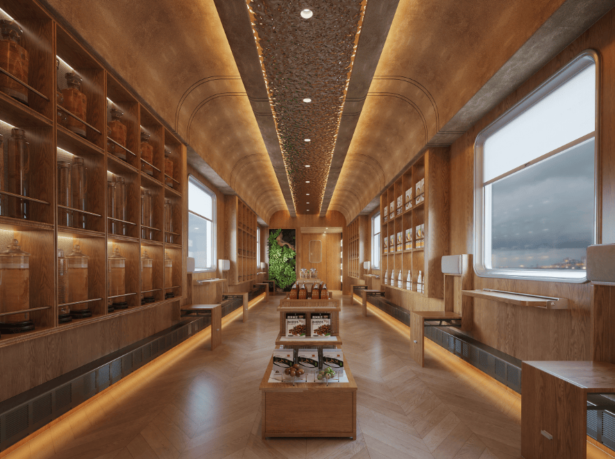 “伊春号”高端旅游列车作为交通运输与旅游融合发展的新业态,城市宣传的新名片,市场消费的新场景,也是宣传推介企业产品的新平台皇冠信用網开号。列车整车编组共12节,承载200-300名游客,其中1节为林都绿色产品展厅,也是移动的直播带货间,总面积75平方米,墙面展柜9个(每个展柜15格,深度14厘米,高度52厘米,宽度36厘米),共计135个展品位;地面展柜6个,并配有大屏幕。林都绿色产品展厅将在列车运行期间向游客全面开放,并由司乘团队运用新媒体、自媒体手段进行网络营销,为企业产品直播带货。