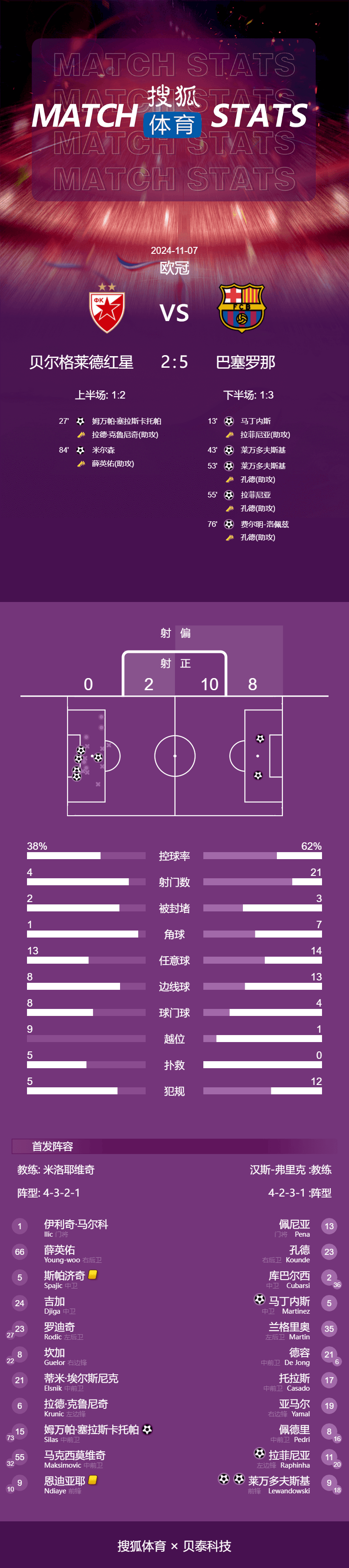 最终全场比赛结束皇冠信用網在线开户,巴萨射门比高达21-4,轻松5-2大胜红星!