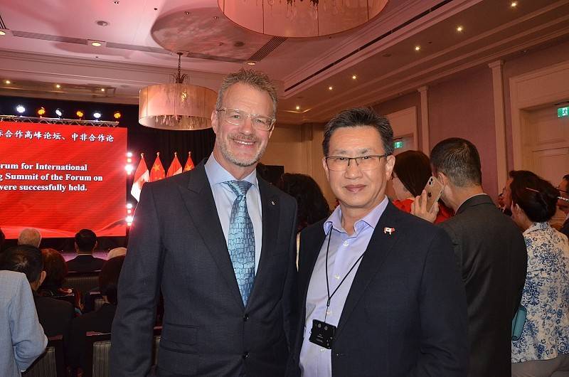 2024年9月26日,在多伦多泛太平洋酒店举行的庆祝中国成立75周年的招待会上,林皓(右)与大山喜相逢怎么注册皇冠信用網 。作者本人提供