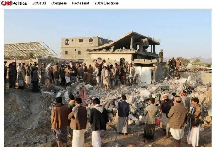 也门民众聚集在一处空袭现场皇冠信用网如何申请 。图/美国有线电视新闻网
