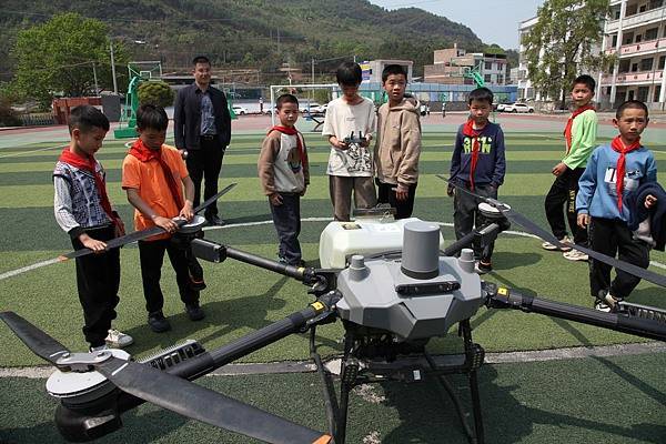 2025年4月3日,广西来宾,忻城县欧洞乡小学,小朋友近距离接触无人机皇冠信用盘去哪里弄 。视觉中国
