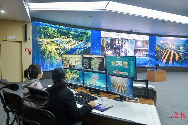 ▲在省综合交通中心监控大厅,工作人员可实时了解全省客运车辆在途运营情况皇冠信用网正网。徐翔 图