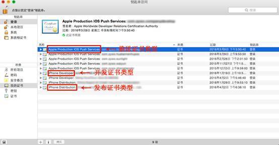 8、证书类型, -开发证书(xcode真机调试,不适用于平台打包可忽略此项); -发布证书(打包安装真机,用来发布In-House和App Store,AdHoc【用来测试用的】)皇冠信用网账号申请。 推送证书(根据开发证书和发布证书分别生成,用于推送消息)