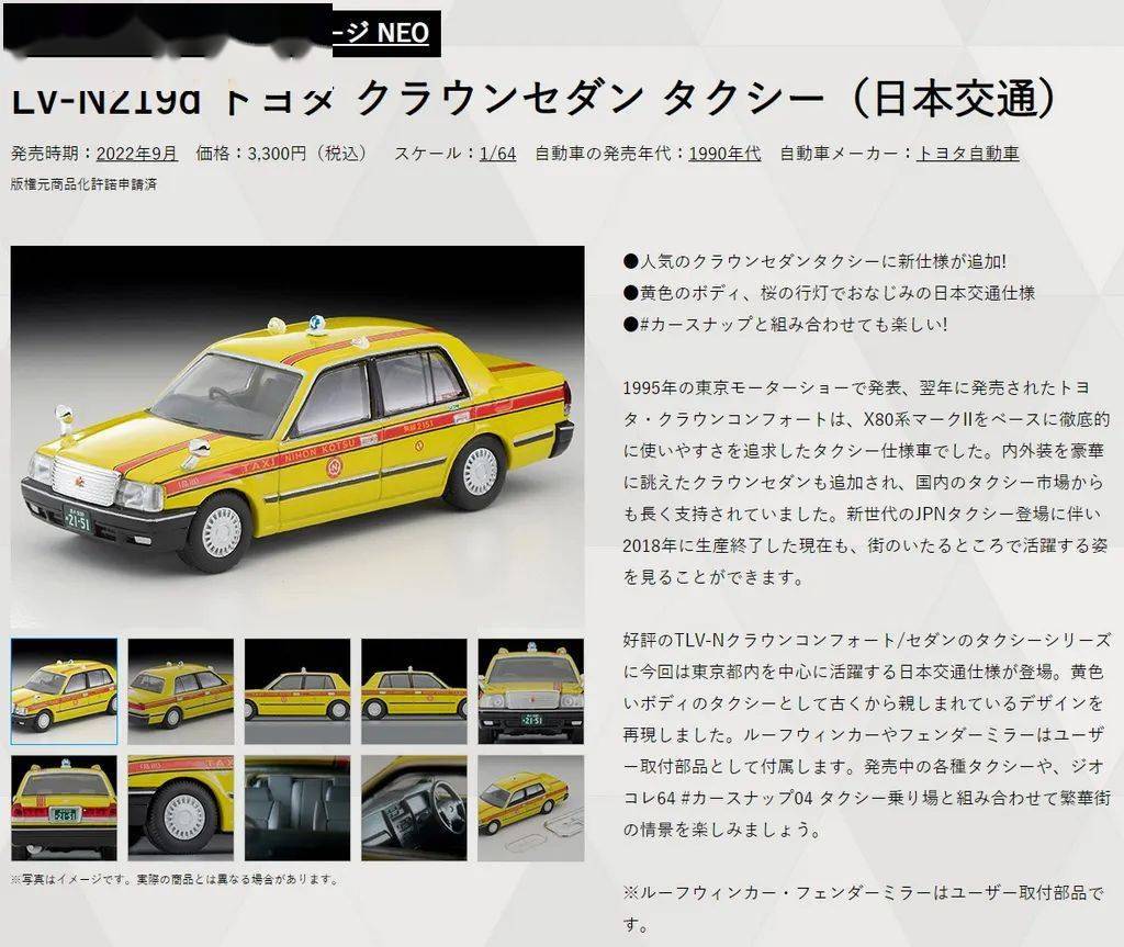 这次试玩的是两个产品,一个是Diocolle 64 Carsnap 04b Taxi Stand套装里包含一个丰田CROWN Comfort的黑色出租车模型,另外一个是LV-N219d的CROWN Sedan出租车皇冠信用盘平台出租。两款模型都是2022年9月上市的,其中CROWN Sedan已经是第4款产品。