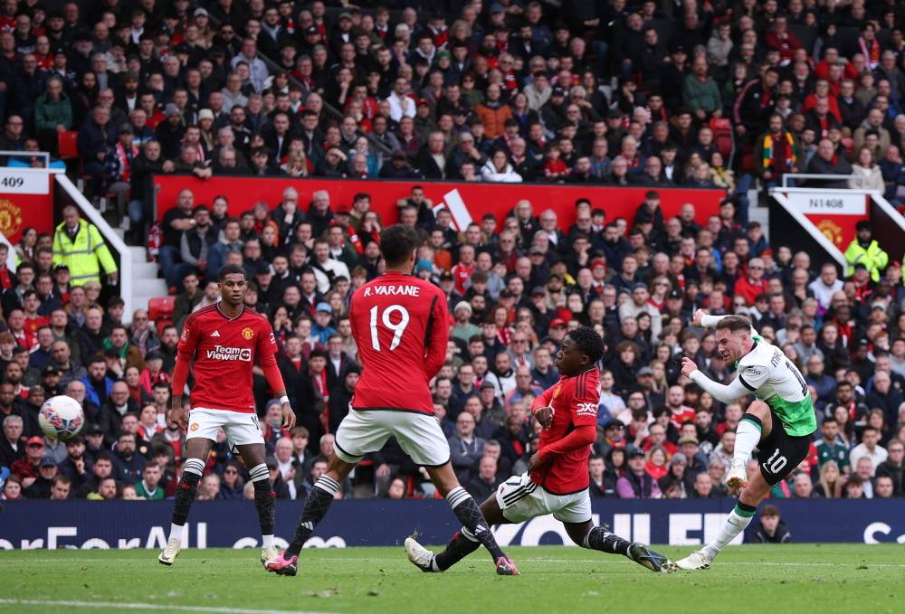 3月17日,利物浦队球员麦卡利斯特(右)攻入球队首球英格兰足总杯。新华社/欧新