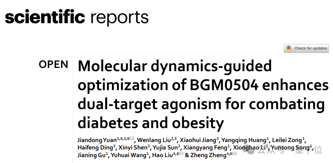 一项来自中国团队的研究,登上Nature子刊Scientific Report皇冠登3。